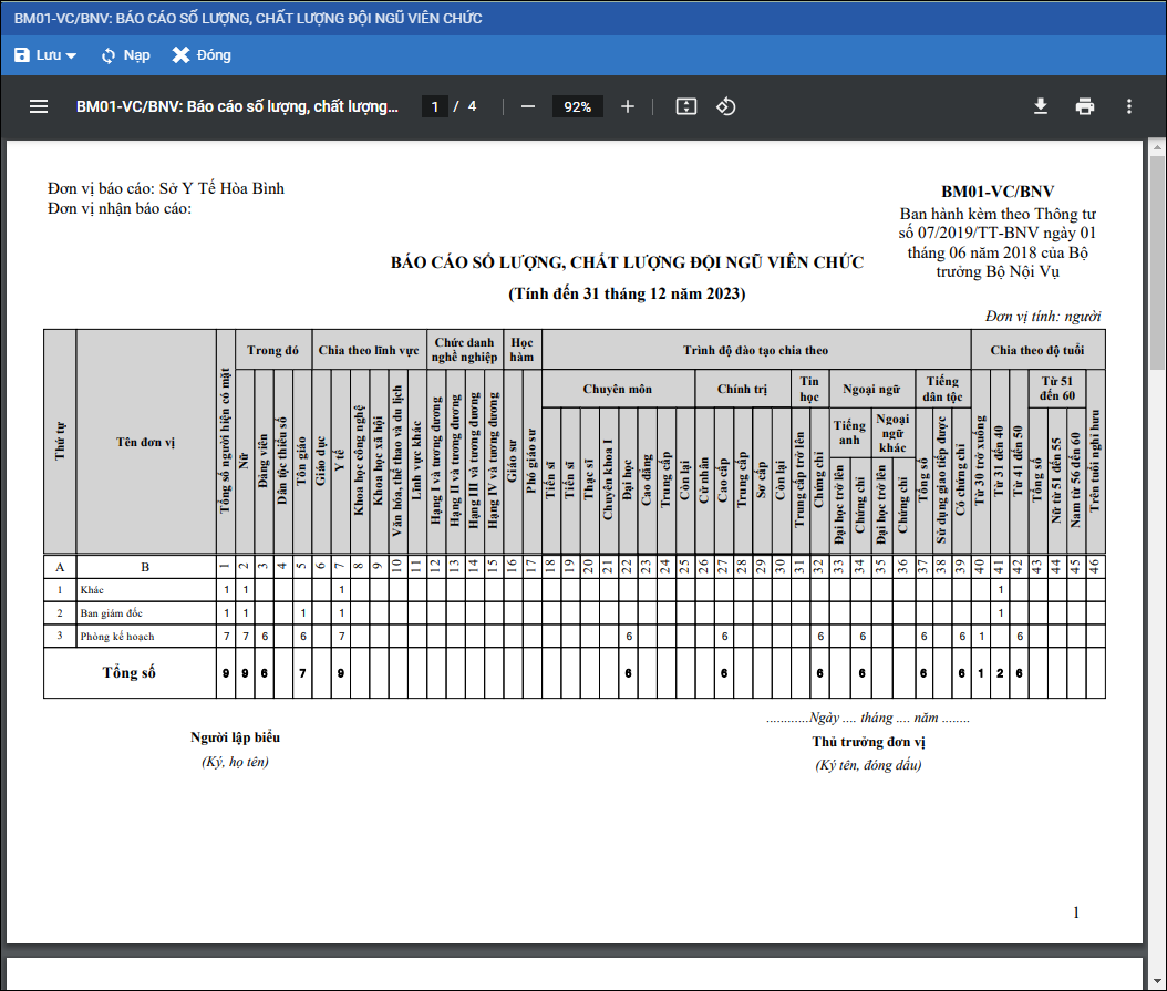 [Báo cáo TT 07/2019/TT-BNV] BM01-VC/BNV: Báo cáo số lượng, chất lượng đội ngũ viên chức
