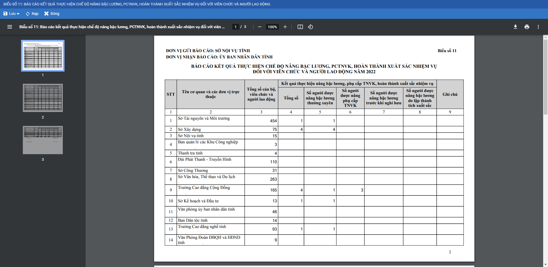 Đáp ứng Biểu số 11: Báo cáo kết quả thực hiện chế độ nâng bậc lương, PCTNVK, hoàn thành xuất sắc nhiệm vụ đối với viên chức và người lao động.