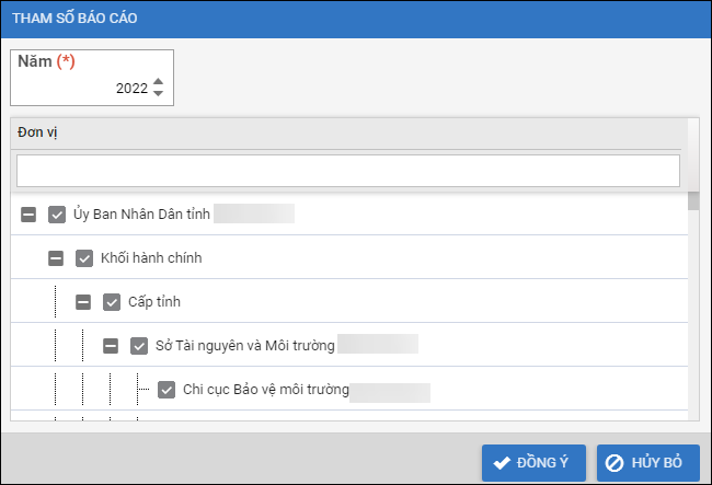 • Tích chọn đơn vị cần hiển thị trên báo cáo