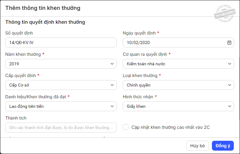 - Năm khen thưởng: Chọn năm nhận khen thưởng.