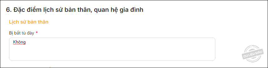- Bị bắt tù đày: Nếu có, ghi rõ thời gian từ ngày tháng năm nào đến ngày tháng năm nào, nơi xảy ra sự kiện, đã khai báo cho ai… Nếu không có thì ghi “Không”.