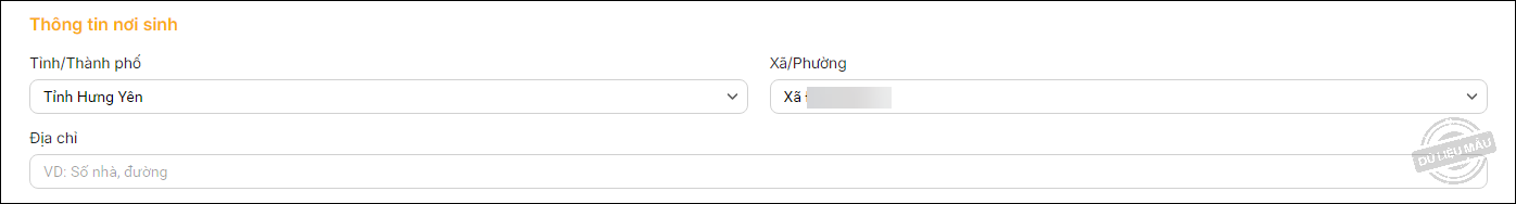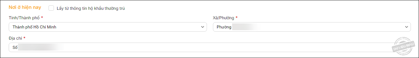 - Địa chỉ: Nhập thông tin địa chỉ chi tiết (số nhà, tên đường, tên phố…).