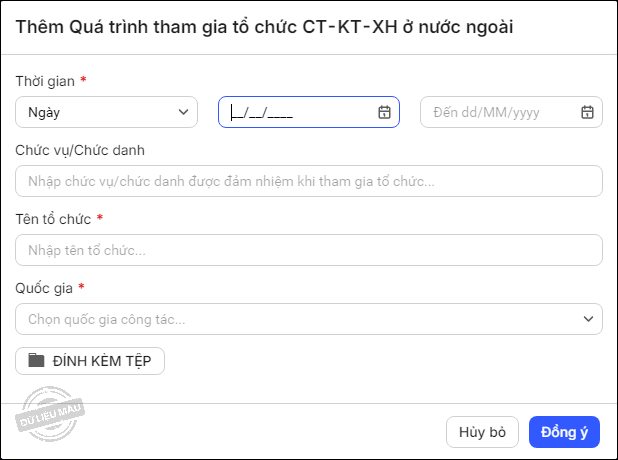 - Thời gian: Nếu có, nhập ngày tháng năm tham gia tổ chức nước ngoài.