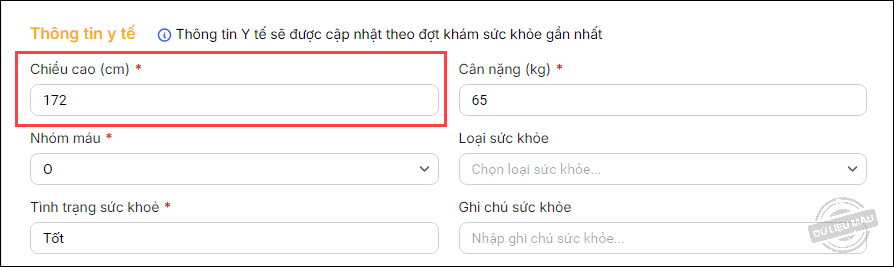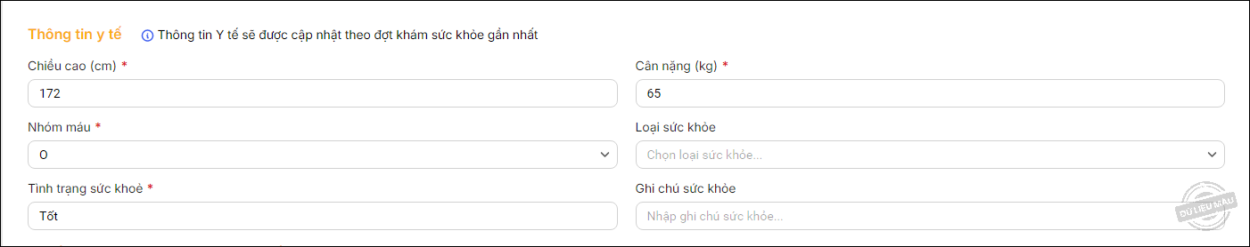 - Tình trạng sức khỏe: Nhập tình trạng Tốt, Khá, Trung bình…