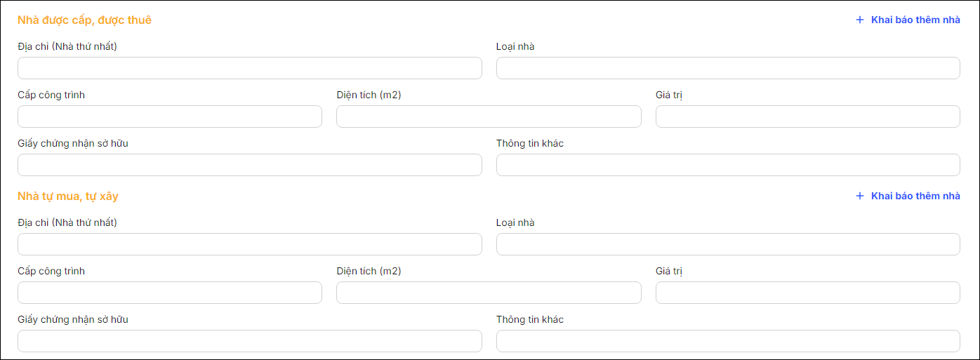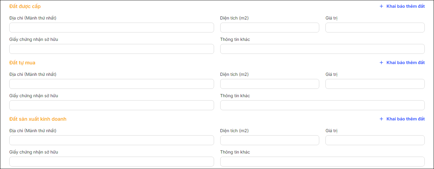 - Giấy chứng nhận sở hữu: Nhập Giấy chứng nhận quyền sở hữu tài sản.