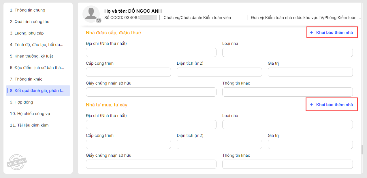 -> CBCCVC khai báo tạm thời nội dung bất kỳ, đợi Bộ nội vụ thay đổi tiêu chuẩn kỹ thuật.