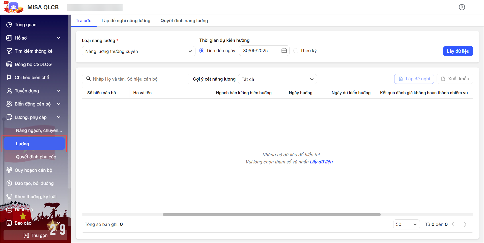 Đổi tên menu Quyết định lương thành Lương, tại đây Cán bộ tổ chức có thể theo dõi tất cả CBNV sắp đến hạn bậc lương, bao gồm CBNV bị kỷ luật, không hoàn thành nhiệm vụ trong thời gian giữ bậc hiện hưởng