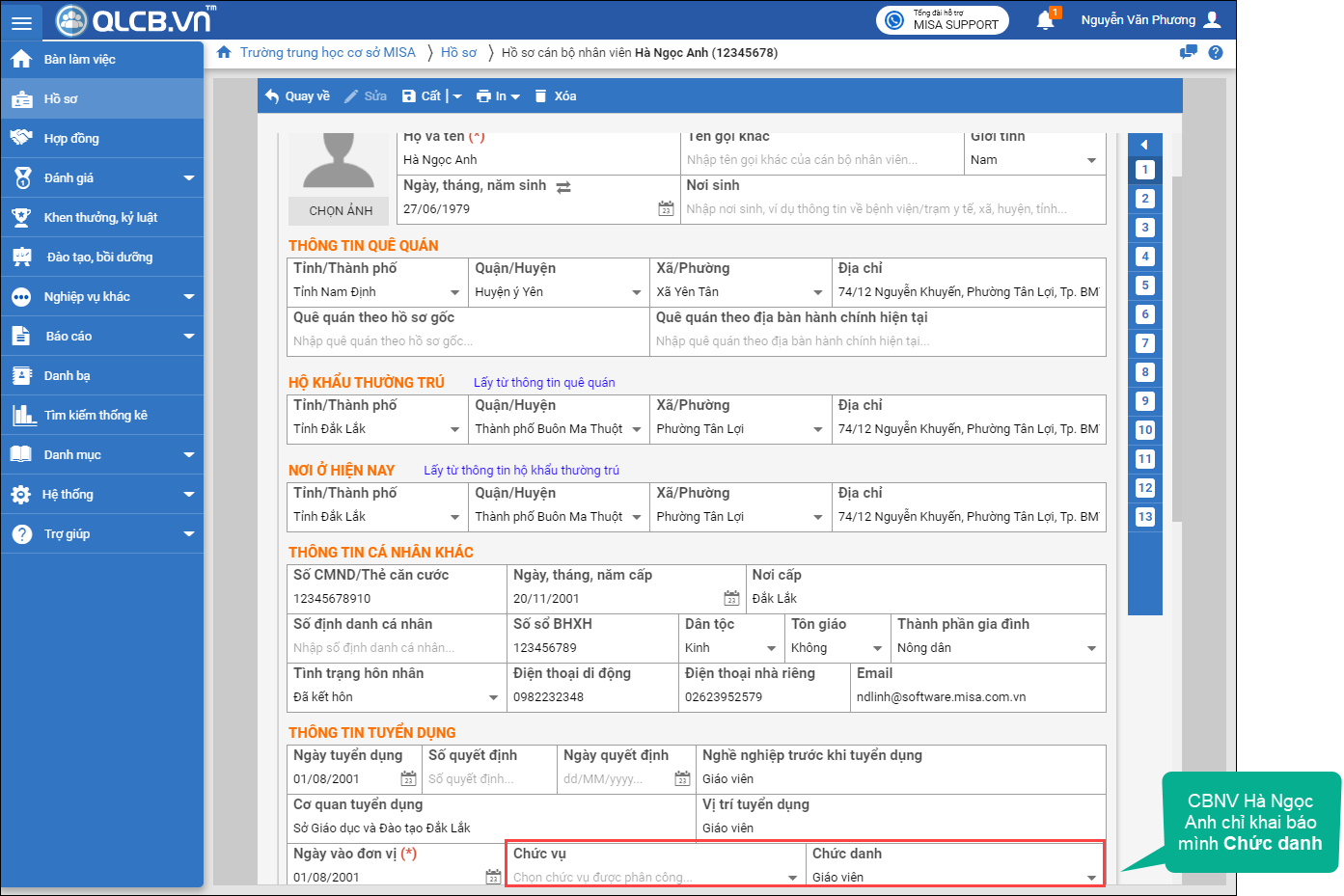 - CBNV Hà Ngọc Anh sẽ không hiển thị sai sót về chức vụ/chức danh.