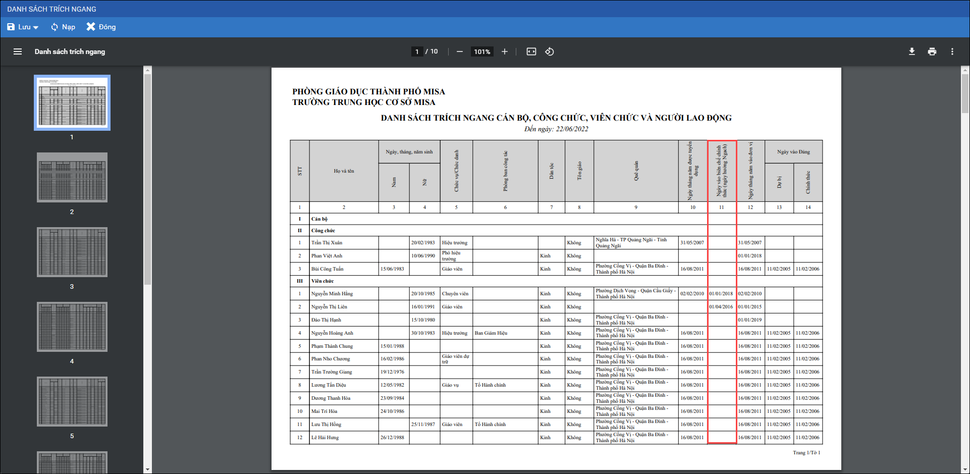 Giúp CBTC bổ sung cách lấy số liệu cột ngày vào biên chế chính thức trên Danh sách trích ngang.