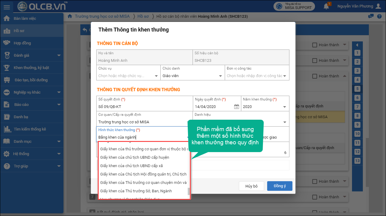 – Kể từ phiên bản R47, phần mềm bổ sung thêm các hình thức khen thưởng đúng theo quy định.