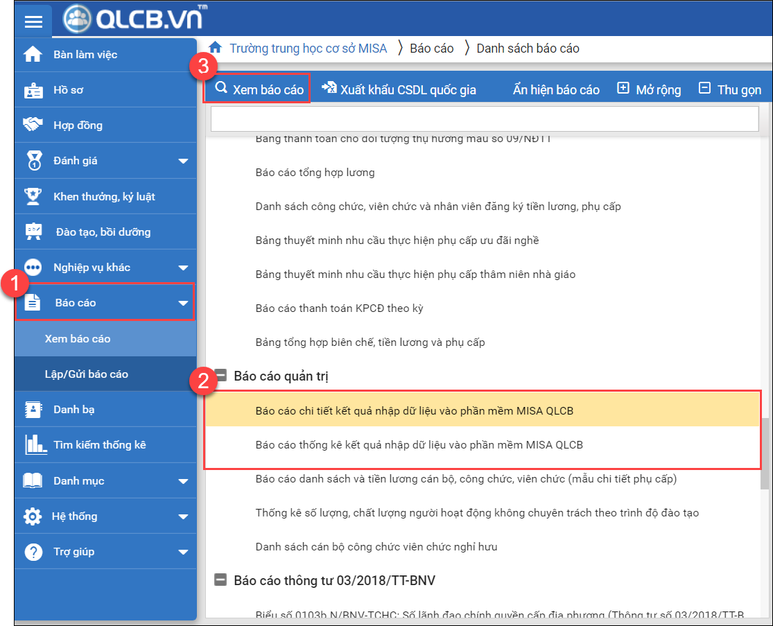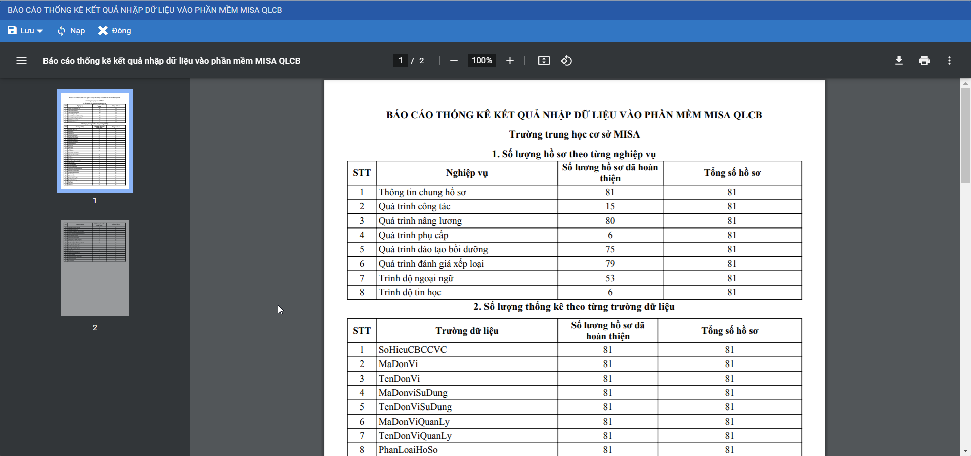 • Báo cáo thống kê kết quả nhập dữ liệu vào phần mềm MISA QLCB