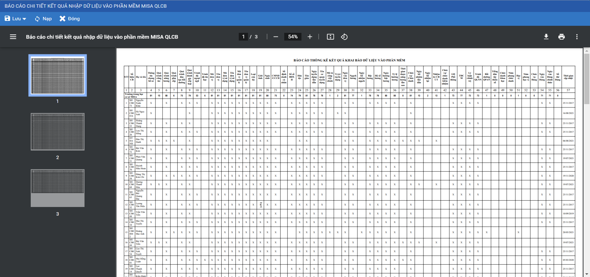 • Báo cáo chi tiết kết quả nhập dữ liệu vào phần mềm MISA QLCB