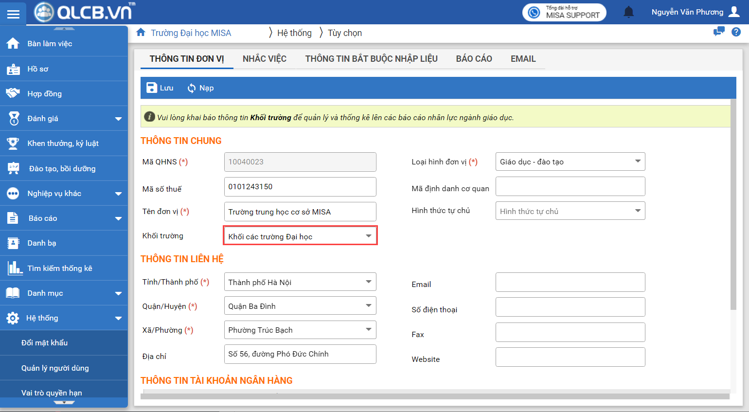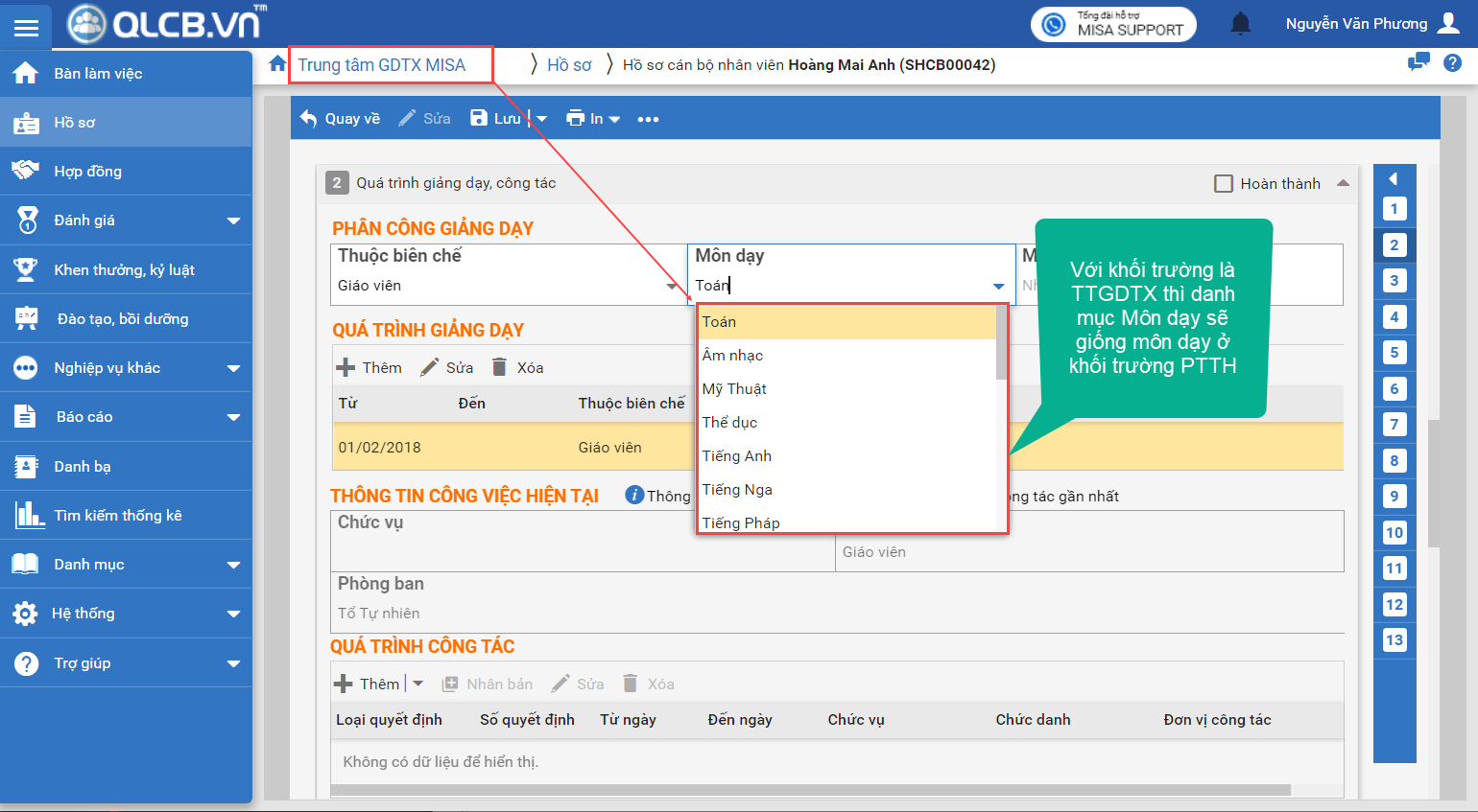 3. Với khối trường là trung tâm GDTX thì danh mục Môn dạy sẽ giống môn dạy ở khối trường PTHT.