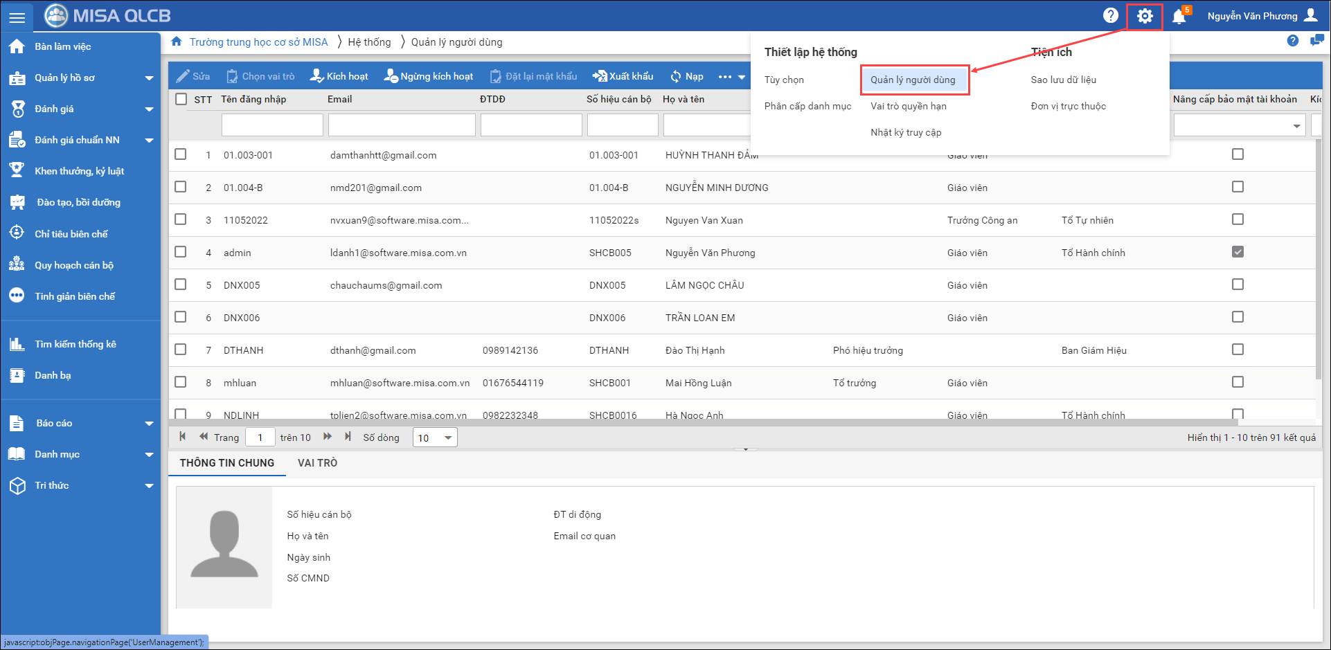 1. Tại phần thiết lập hệ thống, chọn Quản lý người dùng.