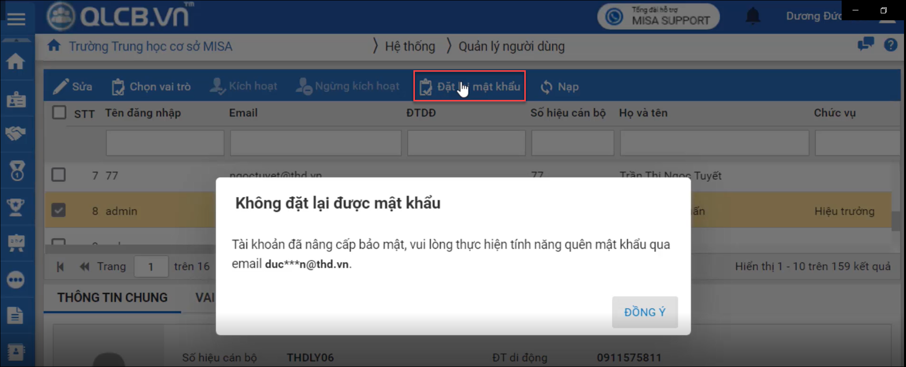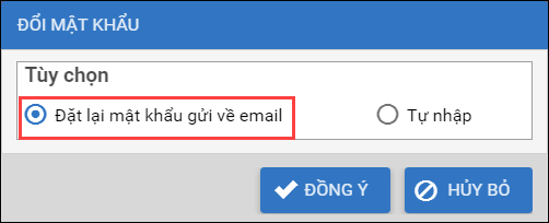 - Khi tích chọn Đặt lại mật khẩu gửi về email, nhấn Đồng ý.