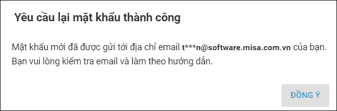 - Phần mềm sẽ hiển thị thông báo mật khẩu đã được gửi thành công. Nhấn Đồng ý để đóng thông báo.