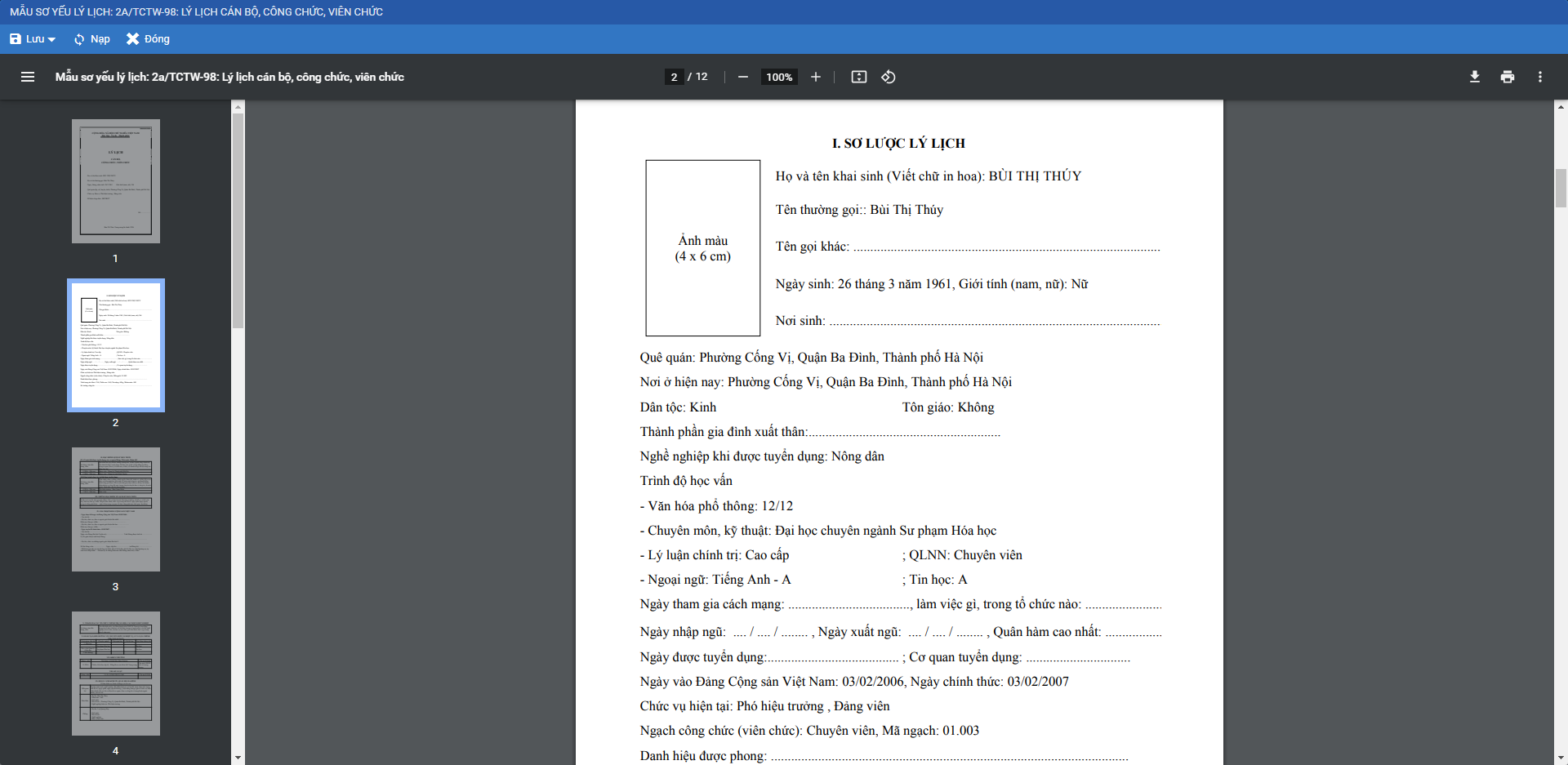 Đáp ứng mẫu sơ yếu lý lịch 2a/TCTW-98.