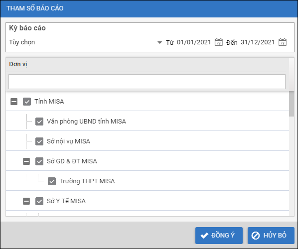 - Tích chọn những đơn vị cần in báo cáo
