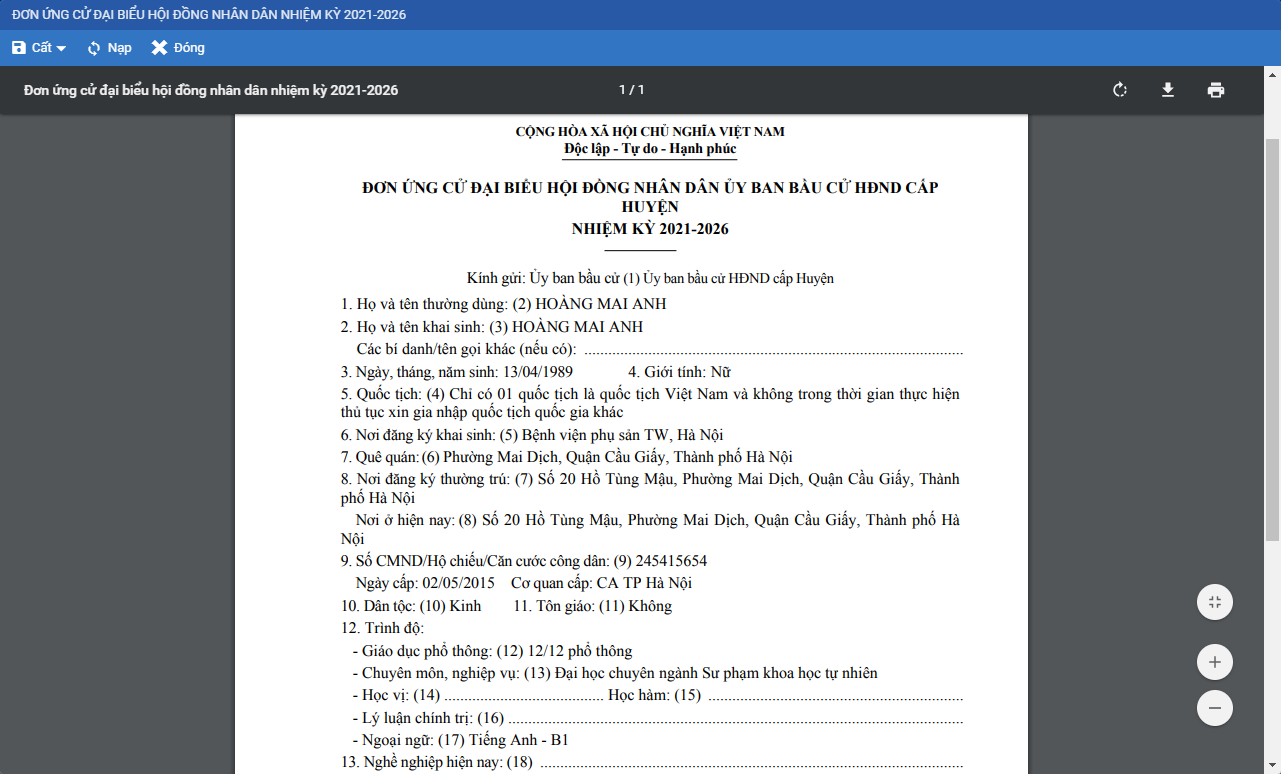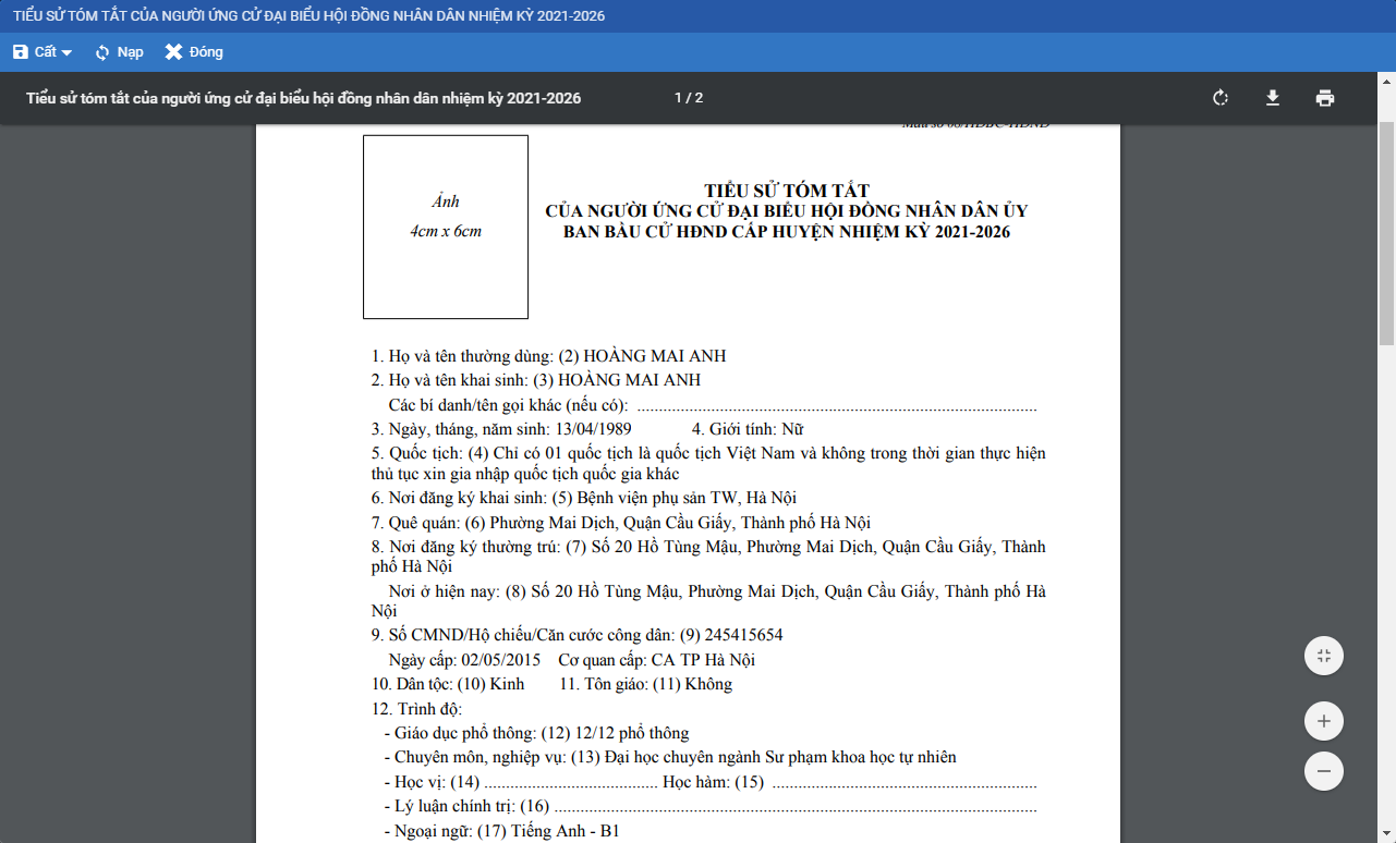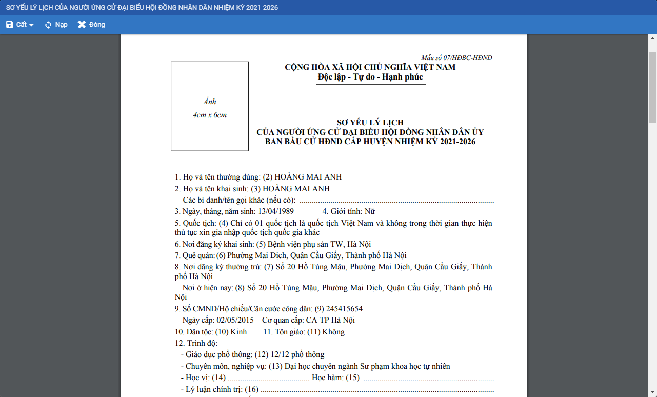 Sơ yếu lý lịch của người ứng cử đại biểu hội đồng nhân dân nhiệm kỳ 2021-2026