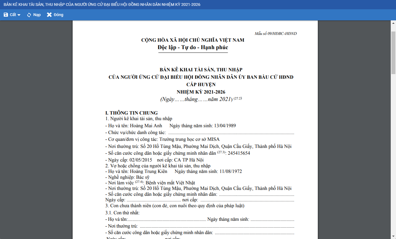 Bản kê khai tài sản, thu nhập của người ứng cử đại biểu hội đồng nhân dân nhiệm kỳ 2021-2026