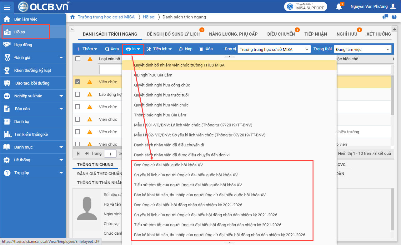 2. Lần lượt nhấn in mẫu từng hồ sơ.
