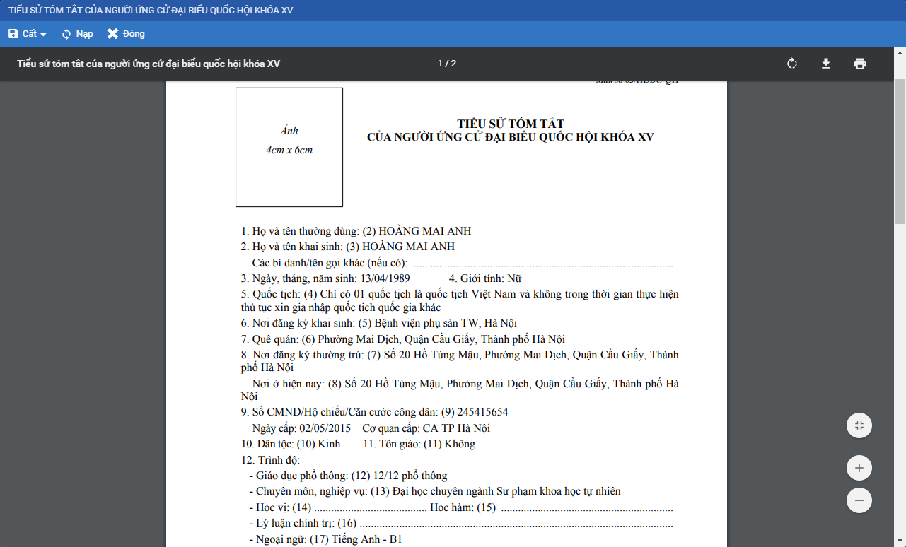 Sơ yếu lý lịch của người ứng cử đại biểu quốc hội khóa XV