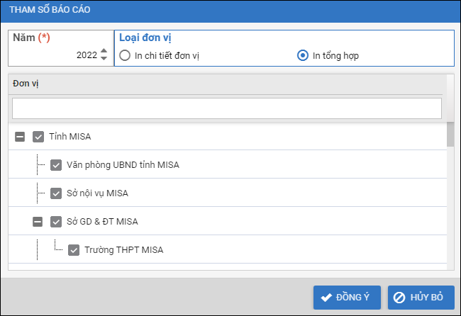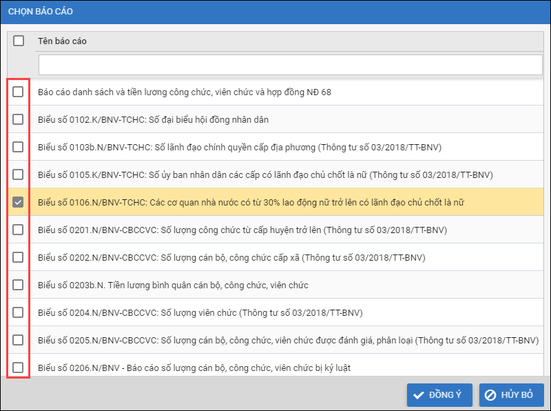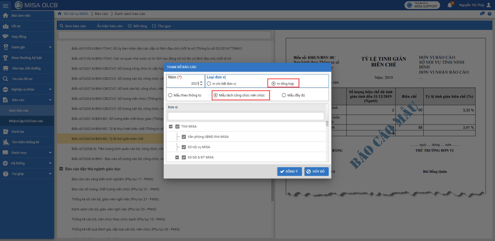 2. Đồng thời phần mềm sửa báo cáo 0303: khi in báo cáo 0303, tại form khai báo tham số, phầm mềm cho phép in tổng hợp tại các đơn vị và thêm mode in tách công chức viên chức khi in tại đơn vị chủ quản/đơn vị nội vụ.