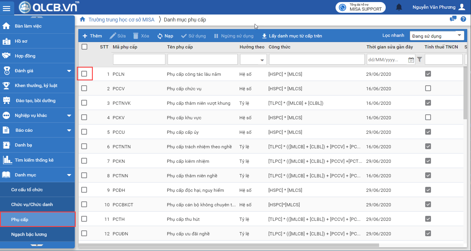 - Danh mục phụ cấp