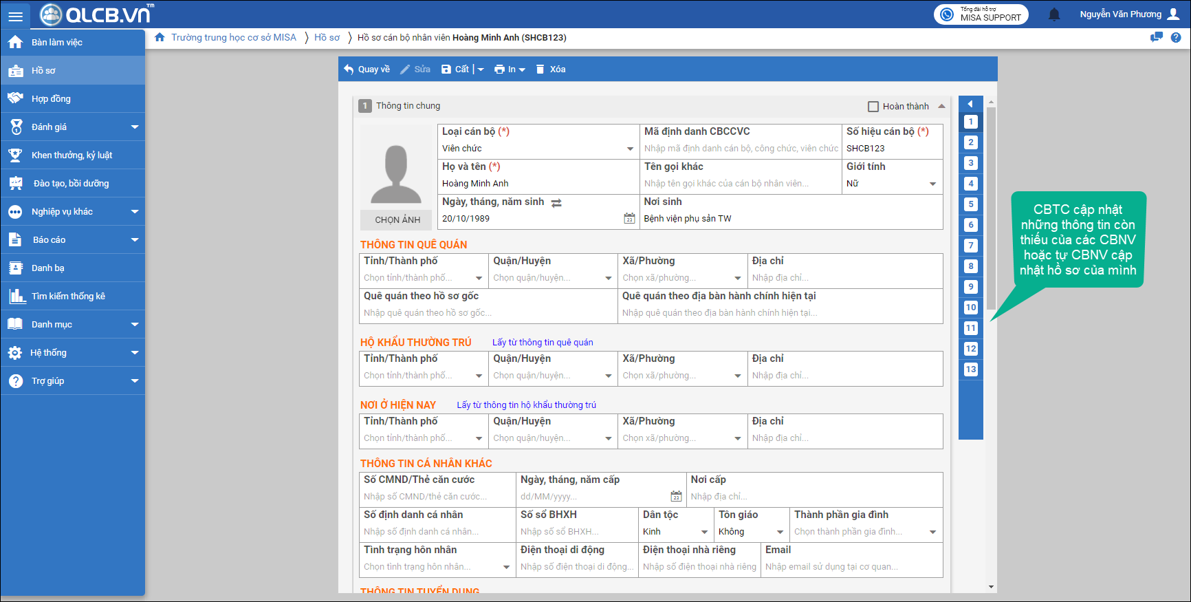 8. CBTC cập nhật những thông tin còn thiếu của các CBNV hoặc các CBNV tự cập nhật hồ sơ của mình.