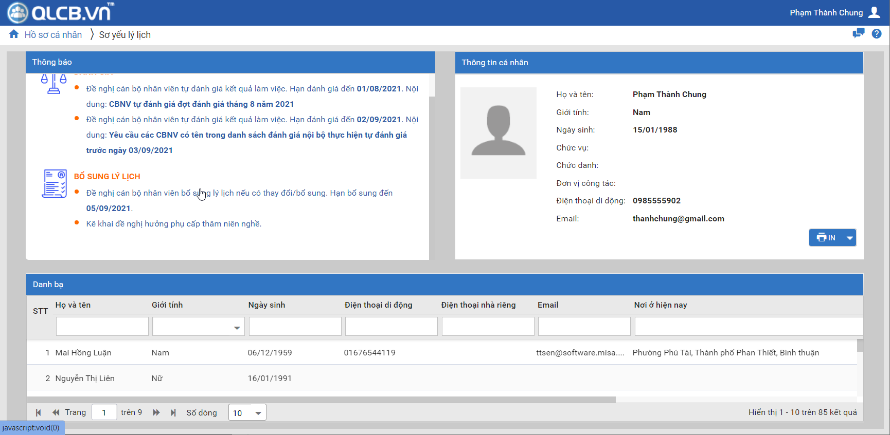 1. CBNV vào bổ sung lý lịch định kỳ.
