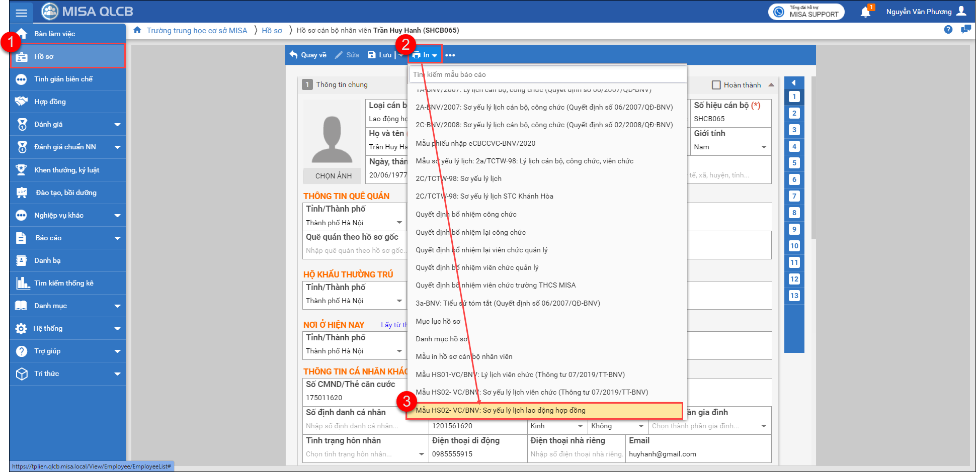 Giúp CBTC có thể in mẫu Hs02- VC/BNV theo thông tư 07/2019 cho các cán bộ lao động hợp đồng.
