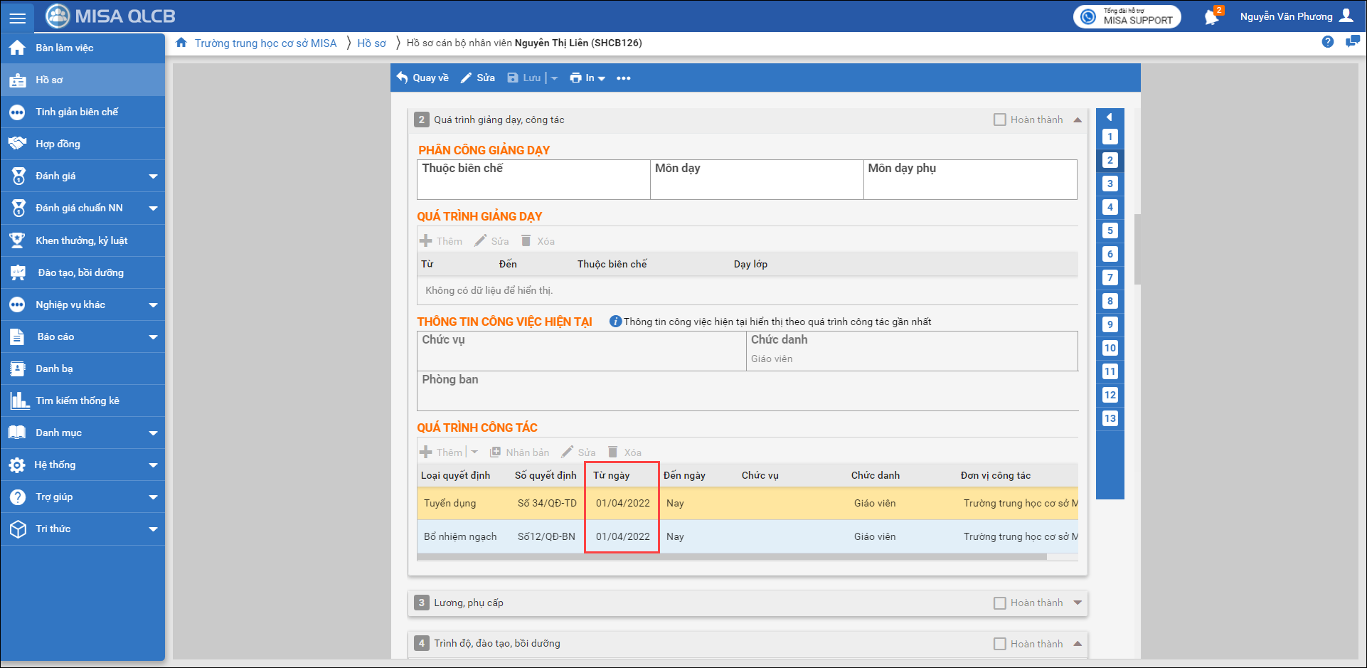 Giúp CBTC nhập 2 quyết định công tác có cùng 1 ngày hưởng để ghi nhận đúng thông tin theo quyết định.
