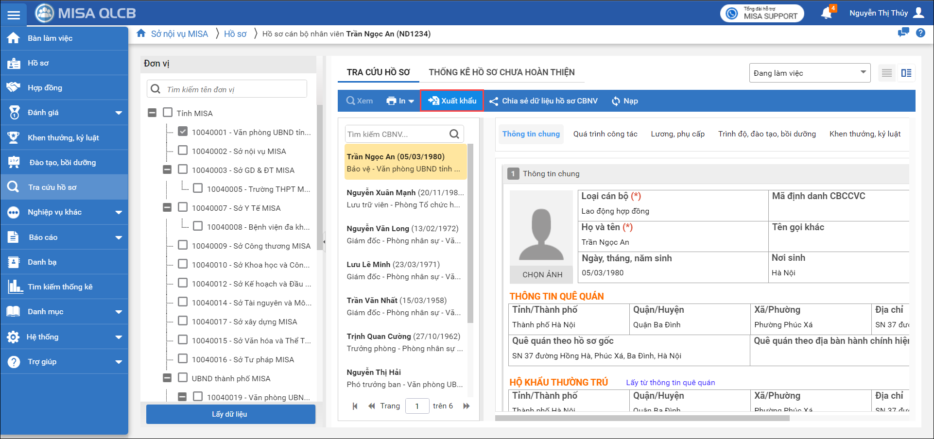 Giúp CBTC PVN lựa chọn thông tin của CBNV xuất khẩu tại tab Tra cứu hồ sơ để làm căn cứ đối chiếu với báo cáo đơn vị cấp dưới gửi lên.
