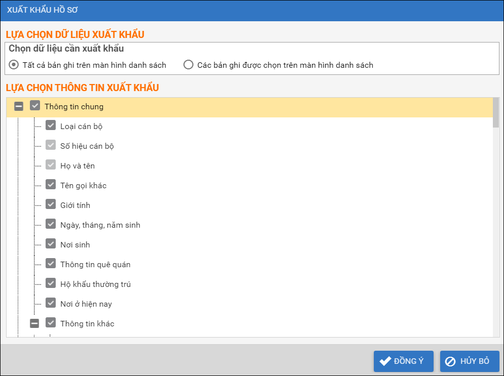 - Dễ dàng tích chọn những thông tin cần xuất khẩu của CBNV.