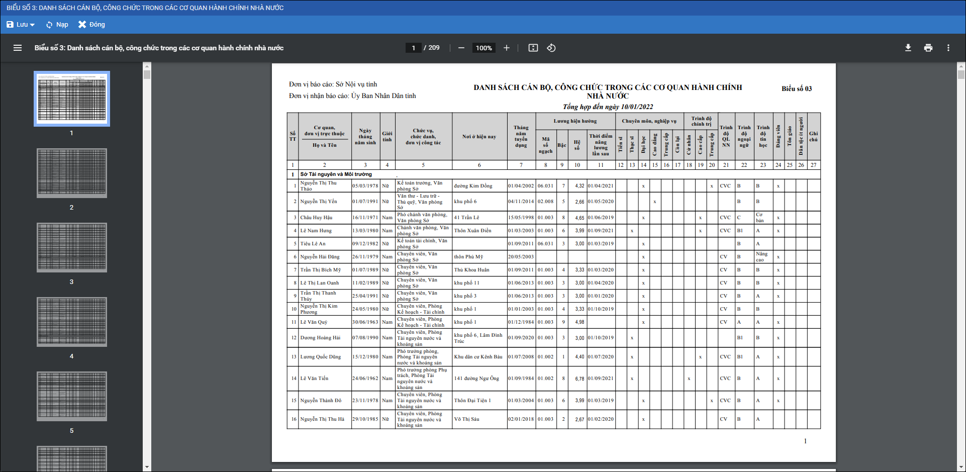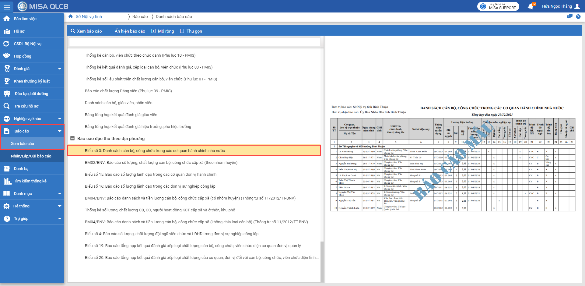 1. Tại menu Báo cáo\Xem báo cáo\Báo cáo đặc thù theo địa phương, phần mềm bổ sung Biểu số 3: Danh sách cán bộ, công chức trong các cơ quan hành chính nhà nước.