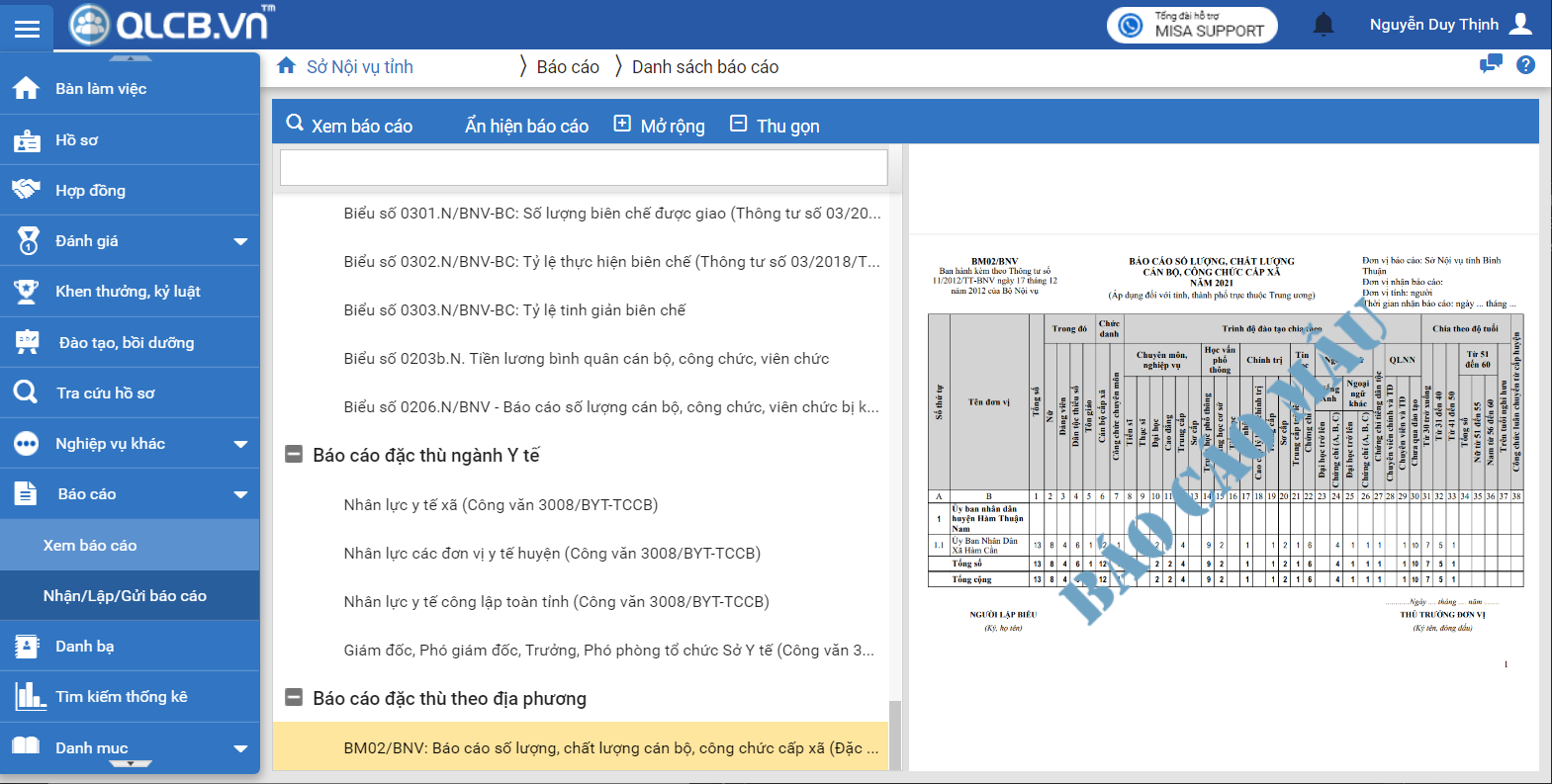 Giúp CBTC tại SNV in được mẫu báo cáo BM02 tổng hợp theo đặc thù đơn vị.