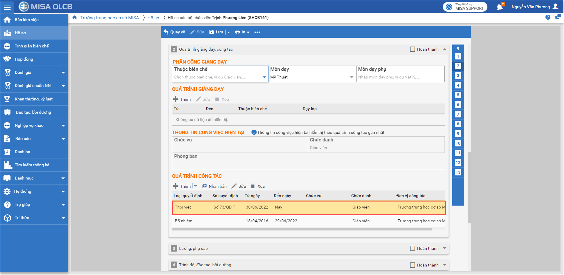 6. Sau khi hoàn thành, hệ thống sẽ tự động sinh bản ghi vào hồ sơ của CBNV.