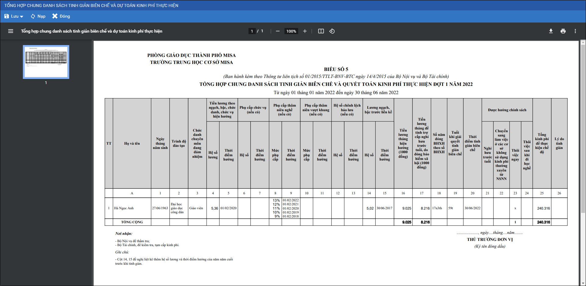 Tổng hợp chung danh sách tinh giản biên chế và dự toán kinh phí thực hiện