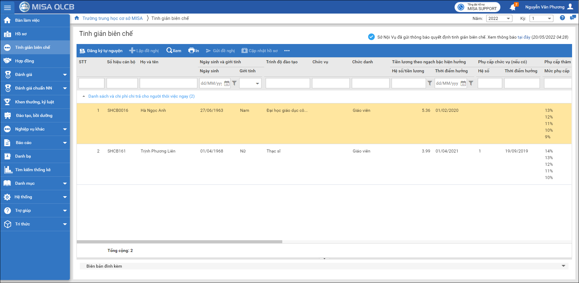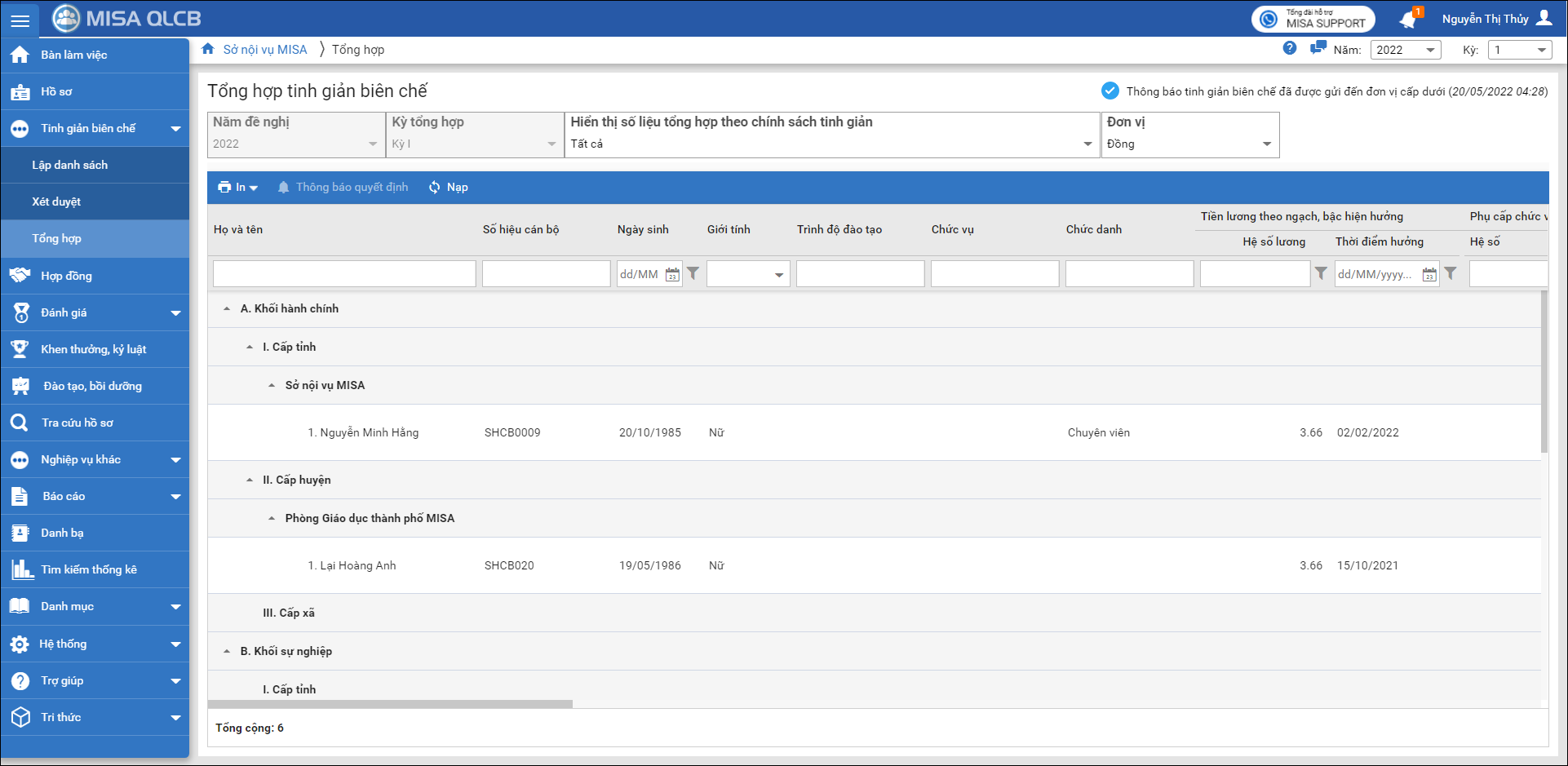 - Khi đó đơn vị cấp trên sẽ nhận được thông báo ngay tức thì và thực hiện phê duyệt/tổng hợp báo cáo thực hiện tinh giản biên chế và gửi lên cấp cao hơn (nếu có)