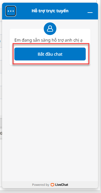 - Phần mềm tự động mở tới đường dẫn hỗ trợ trực tuyến như sau. Anh/chị chọn Bắt đầu chat để chat với nhân viên tư vấn.