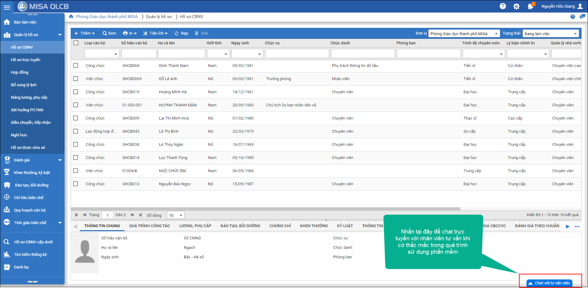 1. Sau khi đăng nhập vào phần mềm, anh/chị nhấn vào biểu tượng Chat với nhân viên tư vấn của MISA tại màn hình làm việc.