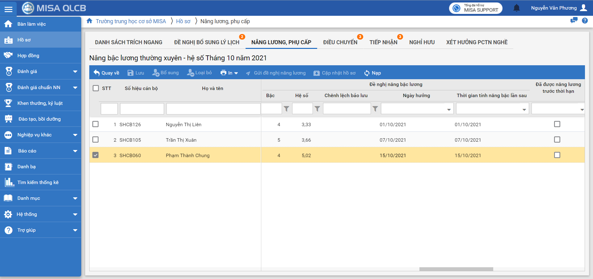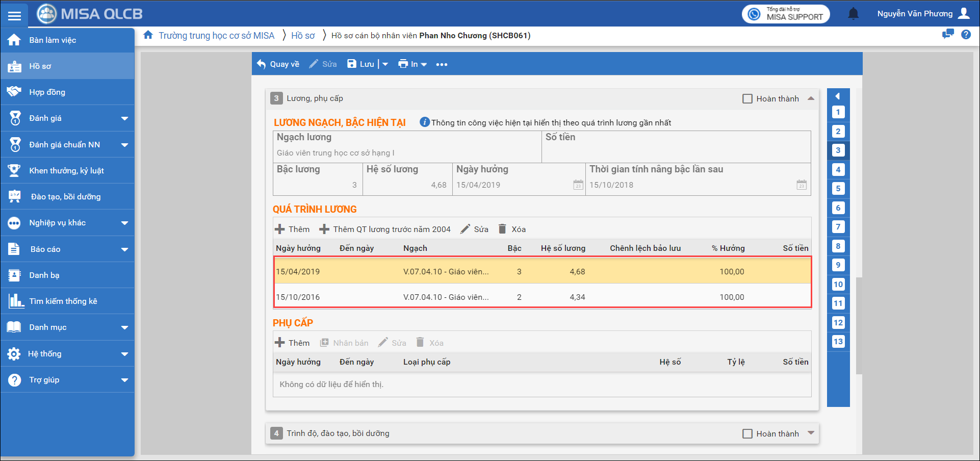 Ví dụ: Có CBNV Phan Nho Chương hưởng ngạch lương bậc 3 từ tháng 4/2019, hưởng lương bậc 2 từ tháng 10/2016.