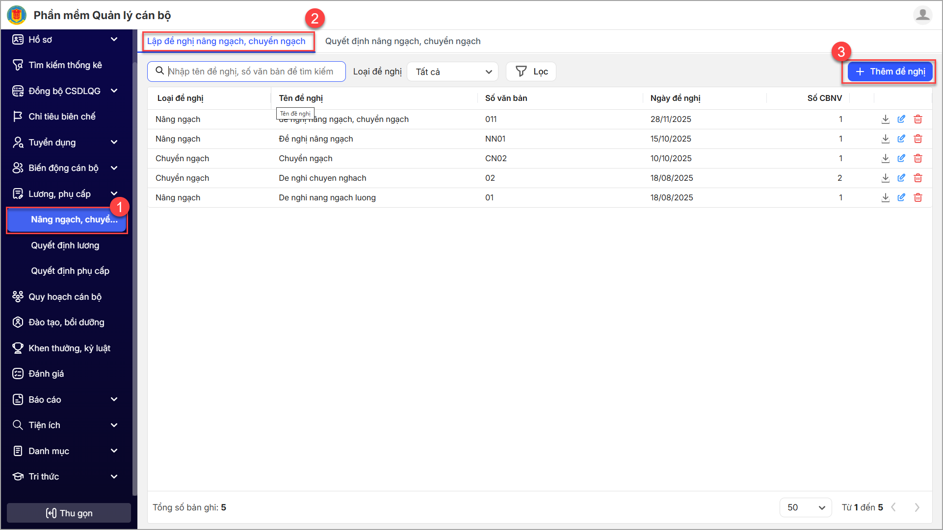 - Tên đề nghị: Ghi rõ tên mang tính mô tả, ví dụ: “Đề nghị nâng ngạch Kỹ sư năm 2025”.