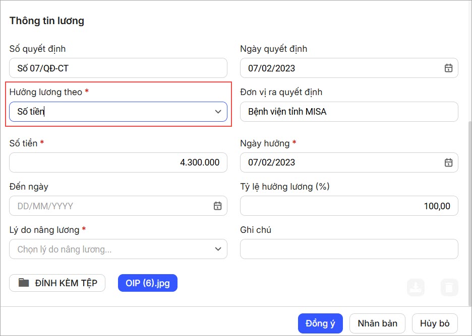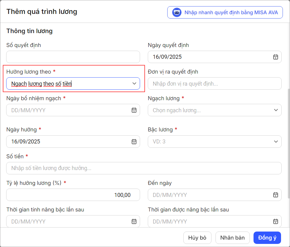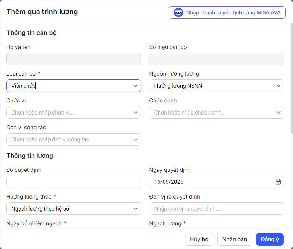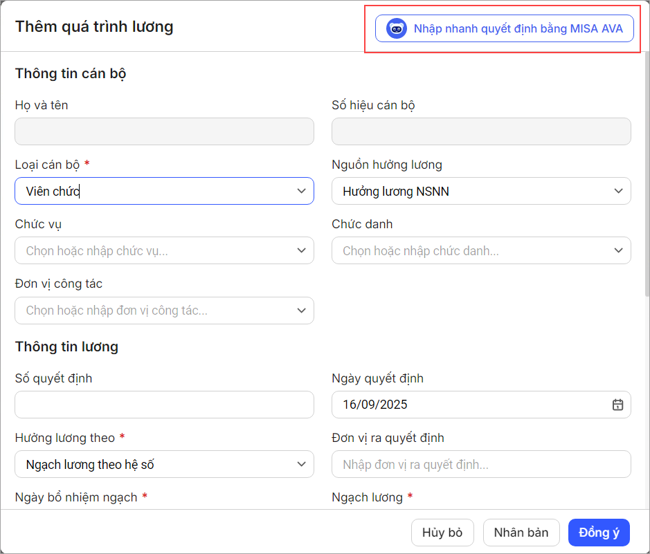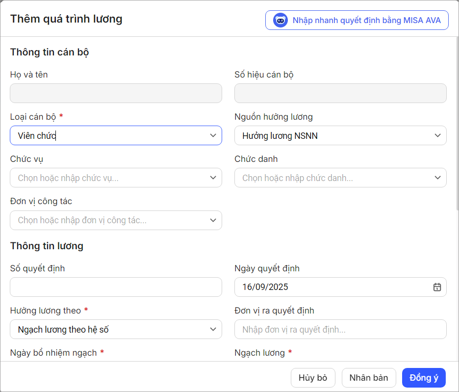 - Số tài khoản nhận lương: Nhập số tài khoản nhận lương của CBNV