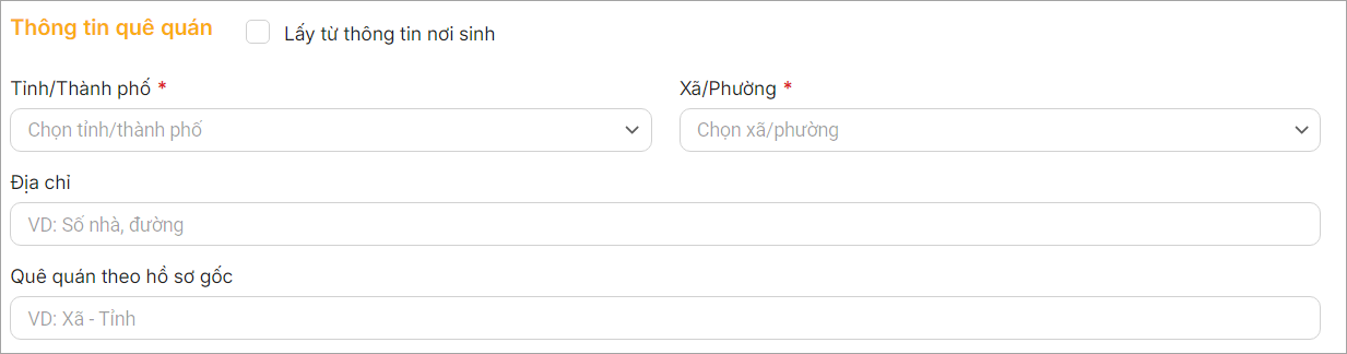 - Chi tiết quê quán: Nhập theo thông tin trên Giấy khai sinh của CBNV.