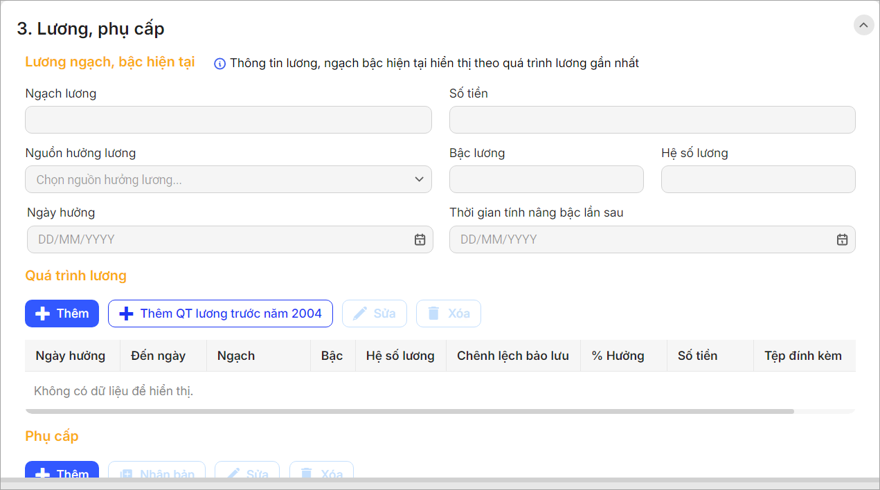 - Ngày vào ngành: Nhập ngày vào ngành đơn vị hiện tại