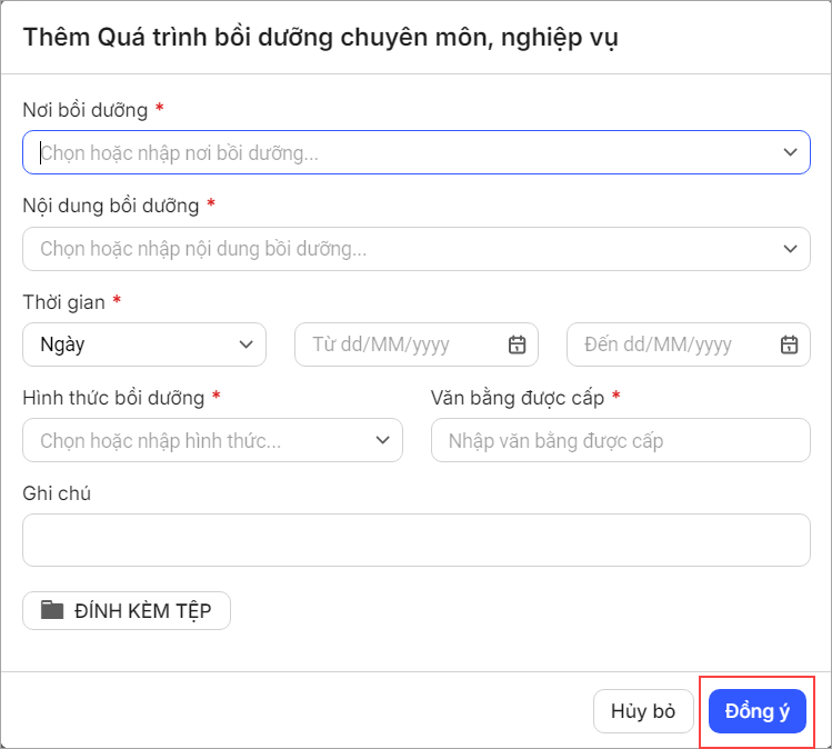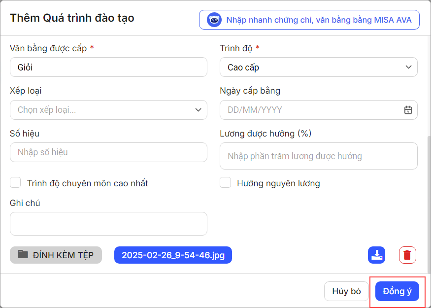 - Nhấn Đồng ý để thêm kết quả đánh giá vào hồ sơ.