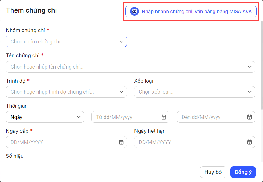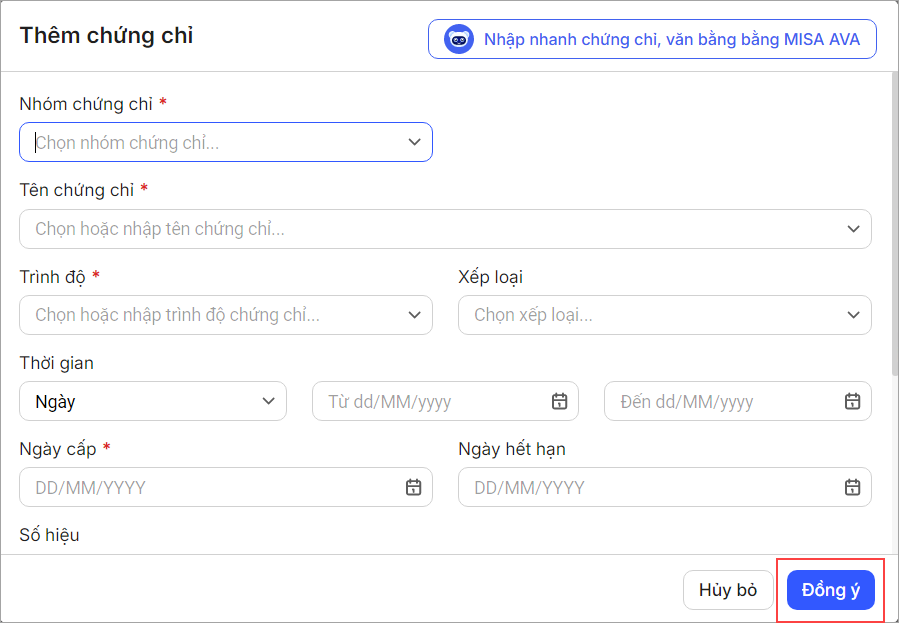 - Ngày cấp: Nhập hoặc chọn ngày cấp trên CCCD của CBNV.