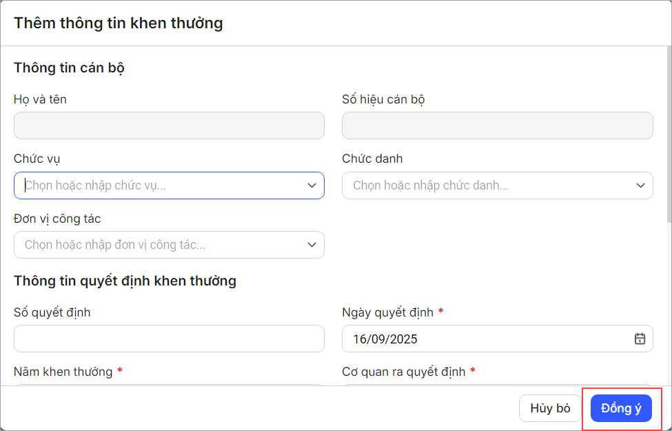 - Danh hiệu được nhà nước phong tặng: Nhập danh hiệu đã được Nhà nước phong tặng (nếu có).