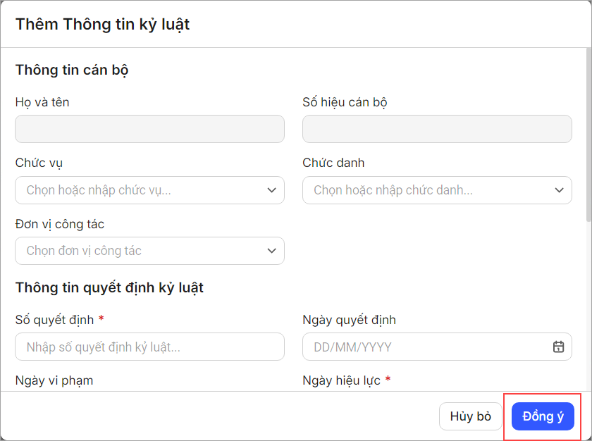 - Số quyết định: Nhập số hiệu của quyết định tuyển dụng cán bộ, công chức, viên chức.